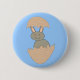 Este botón presenta una imagen adorable de un conejito feliz creado con arte vectorial. El conejo es gris y tiene una gran sonrisa en la cara. El conejo está eclosionando con un huevo. Este diseño extraño y divertido seguramente divertirá a cualquiera.