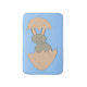 Esta impresionante alfombra de baño tiene una adorable imagen de un conejito feliz creado con arte vectorial. El conejito es gris y tiene una gran sonrisa en la cara. El conejo está eclosionando con un huevo. Este diseño extraño y divertido seguramente divertirá a cualquiera.