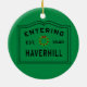 Compra uno para todos en la lista de regalos de tus Navidades. Las vacaciones de navidades en Nueva Inglaterra no estarían completas sin un adorno festivo de Entering Haverhill. Gran idea de regalo para alguien que vive en la ciudad de las MAMÁES de Haverhill, o un barrio de Haverhill como West Parish, Salem Street, Walnut Square, Mount Washington, Rocks Village o Riverside. Dadle una a sus padres, abuelos, recién casados, bienvenidos al barrio, ¡la casa caliente que le diga!
