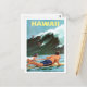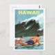 Hawaii, surf, gran ola, postal de viaje vintage