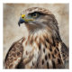 Un halcón con una acuarela detallada y ojos expresivos se representa sobre un fondo suave y borroso. Los colores naturales realzan el aspecto realista.