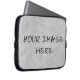 ¡Haz tu propia funda de portátil de 10"! Para crear y diseñar su propia funda de portátil, simplemente cargue sus imágenes para reemplazar el soporte gris de la plantilla. (1 rectángulo en el modo horizontal) Subir, dibujar, fotografiar, ... cualquier cosa que pueda escanear y digitalizar. Hecho de Neopreno Ligero Resistente al Agua. Para añadir más elementos de diseño, imágenes o texto, utilice el botón "personalizar". A continuación, cargue imágenes desde su equipo (jpg, png, gif o tiff). Bajo el botón de edición, puede elegir un color de fondo si tiene espacio en blanco, de lo contrario es blanco. A continuación, agregue algo de texto. Elija su color, tamaño y estilo de fuente favoritos. Si carga un archivo de imagen png con el área circundante transparente, incluso puede colocar imágenes de capa. La herramienta de diseño de zazzles es fantástica.
