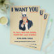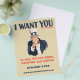 Este volante está diseñado para parecerse al clásico poster de reclutamiento del Tío Sam. Todo el texto debajo del gráfico está listo para ser personalizado con tu propio mensaje para que puedas crear un llamativo volante para promocionar tu negocio, tu evento de historia o simplemente hacer una declaración política.