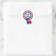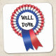 Haz tus propios pegatinas de premio - un diseño de plantilla. Rosette rojo, blanco y azul con cintas. Mostrado con el texto 'bien hecho'. Puedes cambiar esto a lo que quieras. Un pegatina totalmente personalizable. Redimensionar o rotar. Gran herramienta de motivación. Uso para premios o premios.