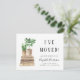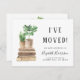 Sencilla moda boho nuevo hogar / cambio de dirección invitación móvil con acuarelas de libros y plantas de la casa y tipografía moderna mínima. En el frente, personaliza con tu nombre, el texto "Me he mudado" y tu nueva dirección. Al revés, personaliza tu invitación con más detalle e incluye un número de teléfono y un correo electrónico si lo deseas.