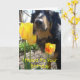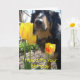 Una linda tarjeta de cumpleaños con un par de fotos de perros y flores, y una historia graciosa dentro.
