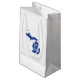 Con la forma de silueta del estado de Michigan llena con un sólido fondo azul y la palabra "hecho en "escrito dentro de este es una gran bolsa de regalo para regalar a cualquier Michigander.