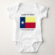 Bandera de Tejas con colores colombianos de la bandera con "hecho en Tejas" arriba y "con las piezas colombianas" debajo.