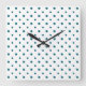 Un reloj de pared cuadrado divertido, con puntos de Polka azul oscuro de diferentes tamaños sobre un fondo blanco que se puede cambiar si se desea. Parte de la colección "Heffalumps" de Posh & Painterly, este patrón se puede ajustar para que se ajuste a cualquier reloj de pared.