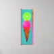 Diseño de helados de arte pop con helados rosas y verdes en un diseño de esténcil original de cono de Zoe Tuong. El marco es totalmente personalizado para adaptarse a la decoración, ideal para una habitación para niños o para alegrar la casa con un ambiente veraniego.