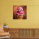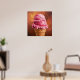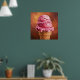 Obra de un cono de helado con un fondo abstracto. Cada pincel capta la textura cremosa y el color rosa vibrante de este gusto clásico. Desde el nítido cono de gofre hasta los bordes de fusión de la doble primicia, esta obra de arte aporta un toque de dulce nostalgia y de apetitosa bondad a cualquier habitación. Las fresas rosas brillantes, enclavadas en un cono de gofre dorado, evocan los sentimientos de los días cálidos y los momentos despreocupados. Trae un toque de dulzura alegre y vibraciones de verano a tu casa con esta encantadora pieza. Esta ilustración se puede personalizar, imprimir y descargar.