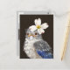 pájaro mozo bebé con gorra de madera de perro en la postal