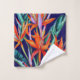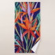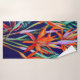 Heliconia sobre el conjunto azul de toallas de baño tropical
