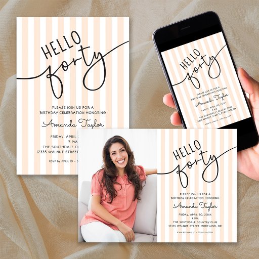Hello Forty Modern Script Chic 40th Birthday PartyDiseñado por Linda Terwee