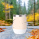 This 40th birthday wine tumbler showcases modern script reading “Hello Forty,” complemented by a light orange background. It's simple yet stylish design makes it a perfect birthday gift for a wine lover.