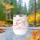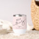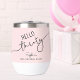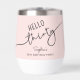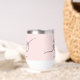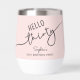This 30th birthday wine tumbler showcases modern script typography reading “Hello Thirty,” complemented by a soft pink background. It's simple yet stylish design makes it a perfect birthday gift for a wine lover.