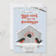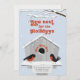 ¡Que tus amigos y familiares sepan que tienes un nuevo hogar! Estas extravagantes tarjetas de invitación móviles de 5" x 7" presentan dos modernos robos uno frente al otro en la parte superior de su percha frente a su casa de pájaros con "hogar dulce hogar" al borde de la puerta del pajar. La nieve está cayendo sobre el pajar cubierto de nieve con un fondo azul cielo. El saludo cuenta la historia, "Nuevo nido para las vacaciones". Simplemente agrega tu nombre y nueva dirección.