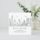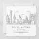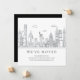 Moderna invitación para un nuevo apartamento con un paisaje urbano con el puente GW y la Estatua de la Libertad.
