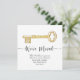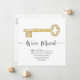Hágale saber a tus amigos y familia su nueva dirección con esta tarjeta postal de invitación de llave rústica. Esta plantilla presenta una clave inspirada en la cosecha de color dorado. Personalizable completo de texto, muy sencillo de editar con sus datos personales.