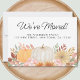 ¿Te vas a mudar pronto a casa? Esta encantadora tarjeta de invitación móvil está decorada con calabazas acuáticas, follaje de otoño y flores. Dice "¡Nos hemos mudado!" en una tipografía de escritura elegante. Personalizable fácil. Acuarela original © Michele Davies.