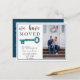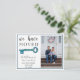 Hágale saber a tus amigos y familia su nueva dirección con esta tarjeta postal de invitación de llave rústica. Esta plantilla incluye una foto de la familia para personalizar y una clave azul vintage con azul marino en la parte posterior de la tarjeta. Personalizable completo de texto, muy sencillo de editar con sus datos personales.