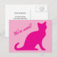 Hemos movido tarjetas postales de diseño de gato rosa lindo. He movido tarjetas de mudanza para nueva dirección. Tarjetas postales personalizadas de mudanza para nuevo hogar. Texto de mudanza personalizado como ¡Hemos cambiado de dirección! Agregue su nueva dirección en la parte posterior. Tarjetas modernas de gatito lindo para nueva casa o ubicación comercial. Mensaje y colores personalizables. También ideal para nueva mascota.