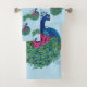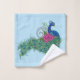 Pavo real con una flor de fussia de loto y henna en un fondo azul claro