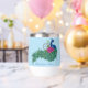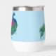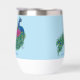 Un pavo real con una flor de fussia de loto y henna en un fondo azul claro