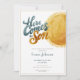 A warm and modern baby shower invitation featuring a soft watercolor sun and the phrase “Here Comes the Son.”