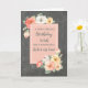 Bonito y cuidadosa tarjeta de saludo para tu hermana en el cumpleaños de tu cuñada con flores de primavera color rosa melocotón y blanco, patrón rústico de pizarra y texto de estilo con letras a mano.