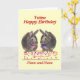 Su y él conejos, sentándose en una torta de cumpleaños. Añada sus nombres al frente de la tarjeta y de su mensaje dentro.
