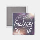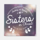 Diseño de emblemas cristianos audaces y elegantes con palabras, "Hermanas en Cristo" en escritura con elementos de diseño de pancartas. El centro superior del emblema tiene un área para sus nombres personalizados (nombres de amigos) en semicírculo blanco. El semicírculo inferior (centrado debajo de las Hermanas en la tipografía de Cristo) tiene palabras, "UNO EN EL ESPÍRITU" pero se puede personalizar para que se ajuste a sus necesidades. Gran regalo para cualquier hermana cristiana. El fondo es un Bokeh dramático con efectos de luz.