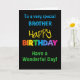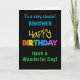Una tarjeta de cumpleaños colorida para un hermano, con letras de colores vivos en un fondo negro, la palabra 'feliz' en amarillo y la palabra 'cumpleaños' en colores arcoiris.