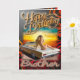 Tarjeta de cumpleaños con un chica sexy en un auto que encaja con un hermano
