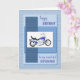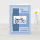 Una motocicleta azul sobre un fondo azul abstracto. El frente dice "Feliz cumpleaños a mi maravilloso hermano". Una gran carta para los aficionados a la bicicleta. Una tarjeta de cumpleaños para un padrino.