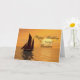 Envíe saludos de cumpleaños con esta hermosa tarjeta. Un yate se embarca en una puesta de sol dorada sobre un océano tranquilo. Una gran carta para un yate o marinero.