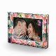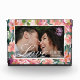 Una encantadora y vibrante impresión de acuarela floral enmarca la foto de la feliz pareja. Un bonito guión de amor, la fecha de la boda y los monogramas son toques dulces para este hermoso bloque de fotos.