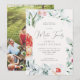 Hermosa invitación a la reunión familiar de acuarela floral y verde incluye un guión de caligrafía de bonito y una foto completa de vuelta.