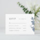 Tarjeta de respuesta rsvp floral de color azul y agua blanca simple y moda.