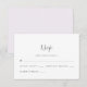 Hermoso pasto suave morado y blanco con tarjeta RSVP de boda con guión de Bonito.