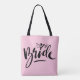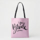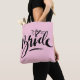 Bolso de tote con boda BRIDE con letras a mano. Diseño de tipografía de escritura elegante para mujeres casadas. Un accesorio de clase para que la novia lo sea. Diseño de caligrafía moderna para escritura a mano con un lindo icono cardíaco. Hermosas obras de arte con letras de la mano de época hechas con amor. La moderna ducha de novia y las ideas de regalo de compromiso. Fondo de color rosa o personalizado pastel. Impresión a dos caras.