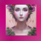 Arte de IA que representa a un hada etérea bonito como una dama con flores rosadas en su cabello.