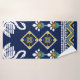 Hermosa figura de patrón oriental geométrico geométrico tribal ucraniano tradicional de fondo azul. Ilustracion vintage abstracto con bordado de estilo azteca.