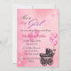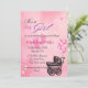 Anuncie la llegada de su bebé y hospede su ducha de bebé con mi hermosa plantilla de invitación con temática rosada que incluye un lindo coche de bebé con globos rosados, que también retrata patas gordas de bebé.