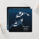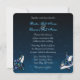Hermosa invitación a la boda de ballenas de Orca con un fondo estrellado en tonos azules, blancos y negros. Este diseño es perfecto para los bodas con temática playera y de destino.