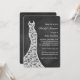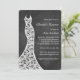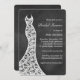Un hermoso vestido de boda de encaje con fondo de pizarra acentúa esta invitación a la ducha de novias. Desplácese hacia abajo para ver los elementos de coordinación.