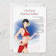 Una belleza playera vestida con un bikini rojo con una flor en el pelo aparece en un fondo de playa con un cielo azul. Una encantadora invitación para una fiesta de cumpleaños en la playa de los chicas o un luau. ¿Quieres ahorrar dinero? Imprimir con el papel de borde cuadrado básico.