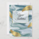 Preciosa mármol azul, plumas doradas, invitación de boda. nombre, horarios, fechas y ubicación totalmente personalizables según tus necesidades