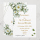 Hermosa invitación de boda verde y blanca. nombre, horarios, fechas y ubicación totalmente personalizables según tus necesidades