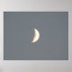 Esta hermosa huella muestra una hermosa fotografía de una luna creciente tomada en la noche mientras la oscuridad entraba. Se pueden ver claramente algunos cráteres y detalles en la superficie de la luna mientras se deambula hacia una luna de cuarto.